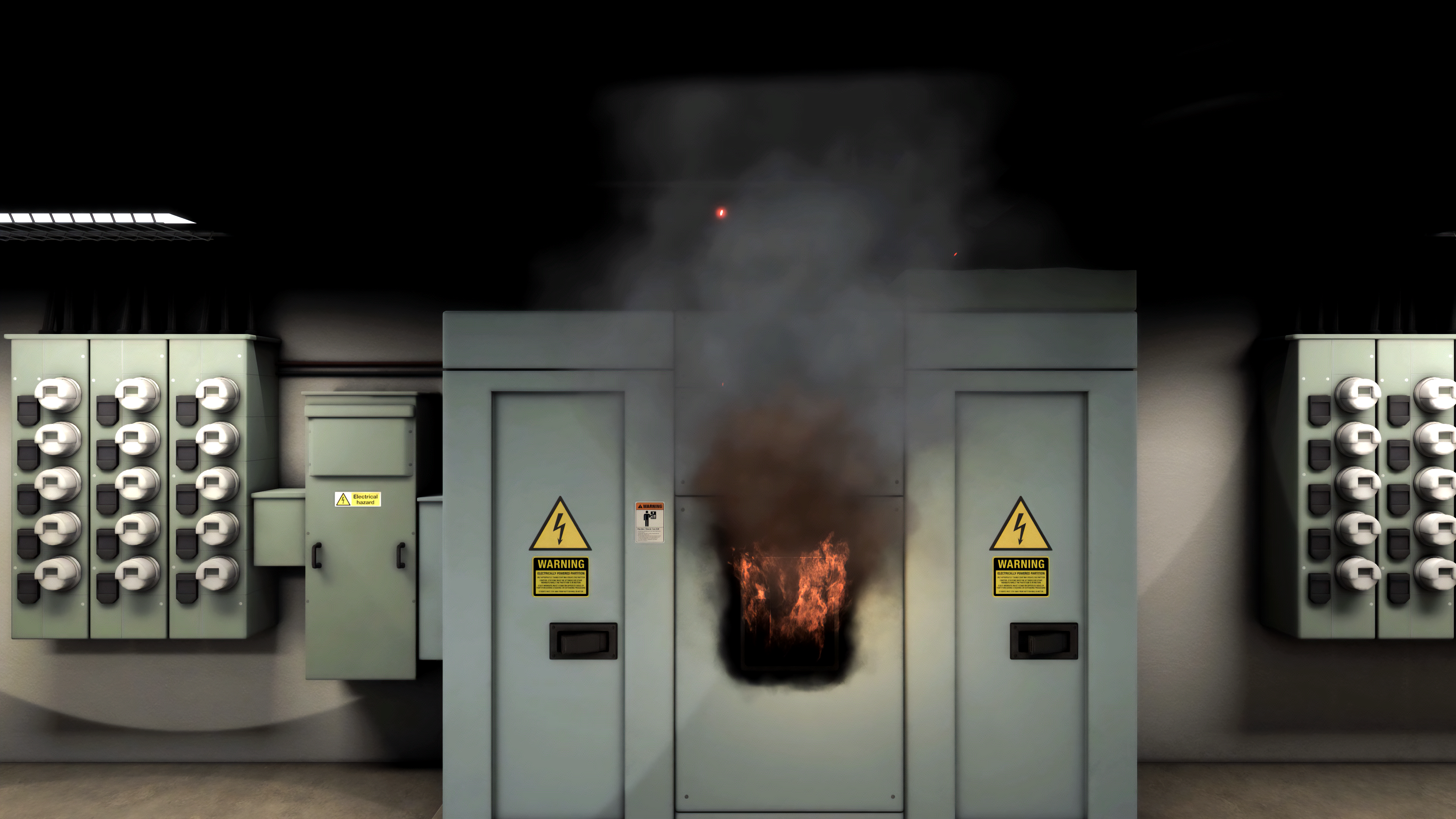 Ez a forgatókönyv számos fontos tényezőt tartalmaz, amelyeket figyelembe kell venni a tűzoltó készülékkel való beavatkozáskor: elektromos áram, anyagok vezetőképessége, zárt tér, sűrű füst stb.