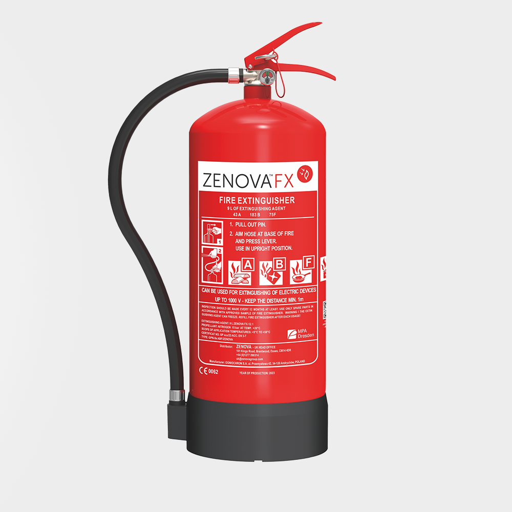 A Zenova FX egy olyan tűzoltó készülékcsalád, amely hatékony és biztonságos mindenféle tűz esetén, kiküszöböli a tűzoltással járó kockázatokat, és csökkenti az azonos szintű tűzvédelemhez szükséges tűzoltó készülékek számát.